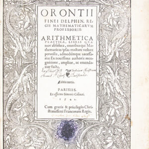 FINE (Oronce) Orontii Finei Delphin. regii mathematicarum professoris. Arithmetica practica, libris quatuor absoluta, omnibus qui Mathematicas ipsas tractare volume perutilis, admodumque necessarias. Ex novissima authoris recognitione, amplior, ac emendatior facta. Aeditio tertia. 1.500€