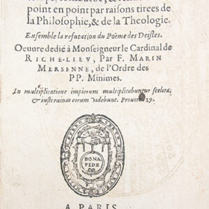 [MERSENNE (Marin)] L’Impieté des Deistes, Athees, et Libertins de ce temps, combatuë, & renversée de point en point par raisons tirées de la Philosophie, & de la Theologie ( ). 2.500€