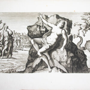 CARRACCI (Annibale) ou CARRACHE (Annibal), LE BLOND (Jean), CHATILLON (Louis de). 1- Galerie du Palais de Farnèse, peinte à Rome, par Annibal Carrache et gravée par Le Blond. Paris. Chez Joubert, marchand d’estampes, rue de Sorbonne, aux deux piliers d’or. An X. – 1802. (24) feuillets, dont 40 gravures sur cuivre numérotées (page de titre gravée, 1 gravure double page, 10 pleines pages, 12 demi-pages et 16 vignettes). 2- Galerie du Palais Magnani, peinte à Bologne, par Annibal Carrache et gravée par Chatillon. Paris. Chez Joubert, marchand d’estampes, rue de Sorbonne, aux deux piliers d’or. An X. – 1802. (21) feuillets, dont 6 gravures double pages et 7 pleines pages. 2.000€