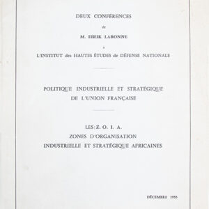 LABONNE (Eirik) Deux conférences de M. Eirik Labonne à l’Institut des Hautes Etudes de Défense Nationale : Politique industrielle et stratégique de l’Union française – Les Z.O.I.A., zones d’organisation industrielle et stratégique africaines 80€