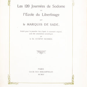 SADE (Donatien Alphonse François, marquis de) Les 120 journées de Sodome ou l’École du libertinage. Publié pour la première fois d’après le manuscrit original, avec des annotations scientifiques par le Dr. Eugène Dühren [i.e. Iwan Bloch]. [i.e. Les Cent Vingt Journées de Sodome]. 2.800€