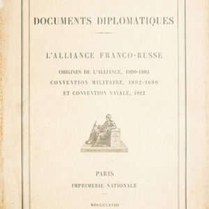 MINISTERE DES AFFAIRES ETRANGERES Documents diplomatiques – L’alliance Franco-Russe. Origines de l’alliance, 1890-1893. Convention militaire, 1892-1899 et convention navale, 1912. 120€