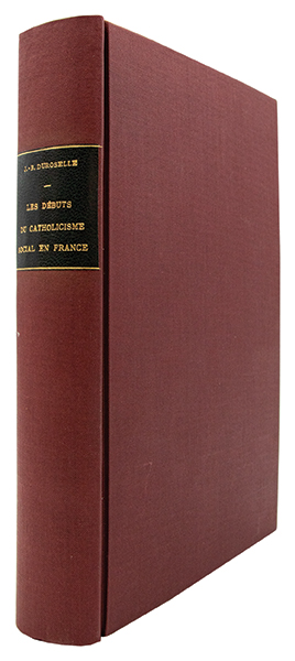 Edition originale et unique rare publiée dans la “Bibliothèque de la science politique”. Etude majeure pour lhistoire politique, sociale et religieuse du XIXe siècle, louvrage de Jean-Baptiste Duroselle constitue une référence incontournable sur lémergence du catholicisme social en France entre la Restauration et la Troisième République. Lauteur y analyse avec précision la genèse et les développements dun courant de pensée qui entend concilier doctrine catholique et question sociale, dans un contexte marqué par lindustrialisation, les transformations du monde ouvrier et les crises politiques successives. Il met en lumière le rôle des figures majeures, telles que Félicité de Lamennais, Frédéric Ozanam ou Albert de Mun, ainsi que les débats doctrinaux et les initiatives concrètes qui structurent ce mouvement. Par lampleur de sa documentation, la clarté de son exposition et la solidité de ses analyses, cet ouvrage demeure une synthèse fondamentale, encore largement utilisée, sur les origines du catholicisme social français. Bel exemplaire, très bien relié par Laurenchet.