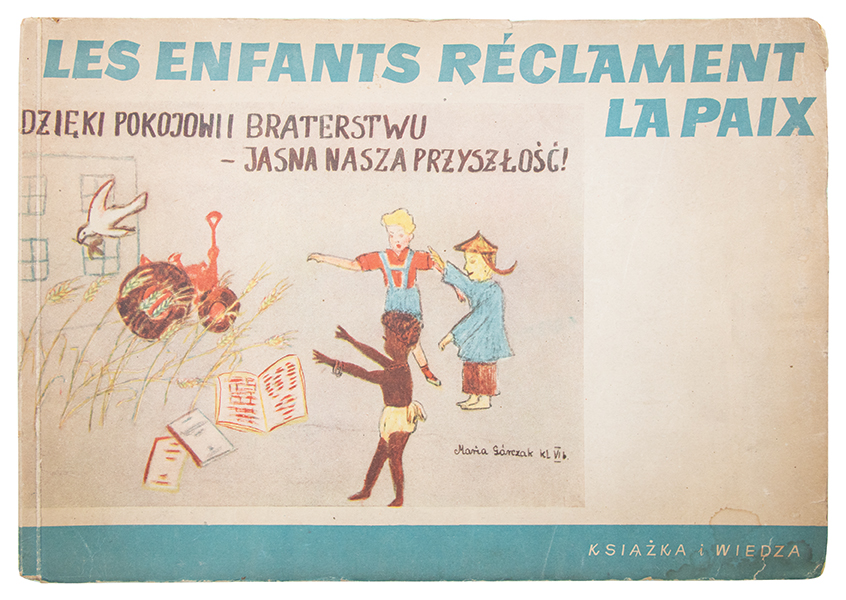 Livre réalisé pour le Congrès pour la paix à Varsovie en 1950. Il contient les reproductions des lettres et dessins pacifistes des enfants polonais. Bon état.