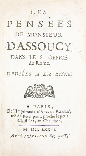 Les Pensées dans le S. Office de Rome. Dédiées à la Reyne.