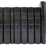 18 volumes grand in-8 (225 x 140 mm) et un volume d'atlas in-4 (263 x 185 mm) , demi-maroquin noir, dos jansénistes à 5 nerfs, titre et tomaisons dorés, têtes dorées, exemplaire non rogné imprimé sur papier vergé fort, (rel. de L. Bauser).