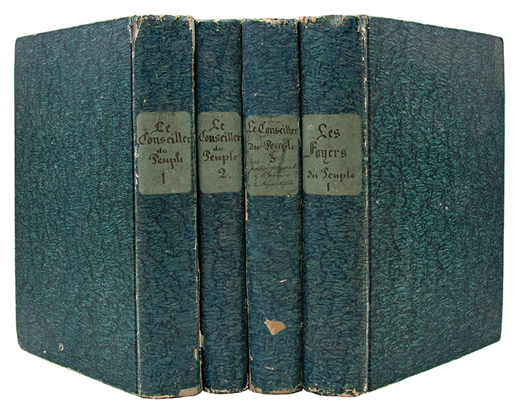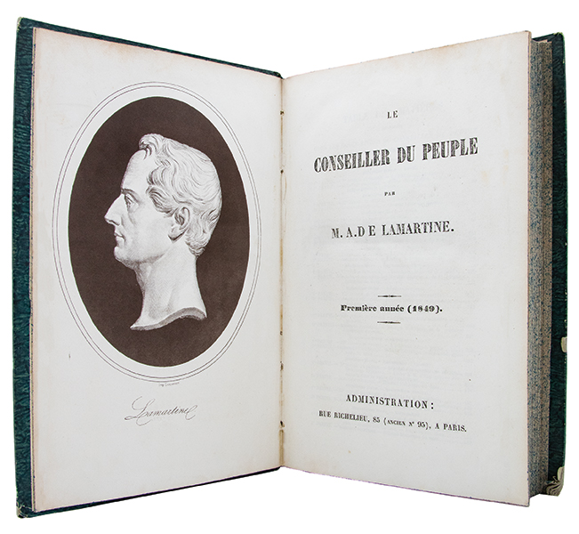 1- Collection complète des 34 livraisons du célèbre périodique rédigé par Lamartine, paru d’avril 1849 à novembre 1851. (Harris, p. 365-366. Hatin, p. 509. Vicaire, IV, 993-994). 2- Édition originale. (Harris, p. 365). 3- Édition originale, bien complète de toutes les parutions (reliées dans le désordre). (Harris, p. 379. Hatin, p. 523. Vicaire, IV, 1000). 4- Édition originale, publiée en livraison, avec ‘Le Conseiller du peuple’. (Vicaire, IV, 998). 5- Édition originale. Première partie seule (Vicaire, IV, 994 & 999). Papier des reliures frottées avec accrocs de papier. Les pages de titres intermédiaires n’ont pas été conservées.