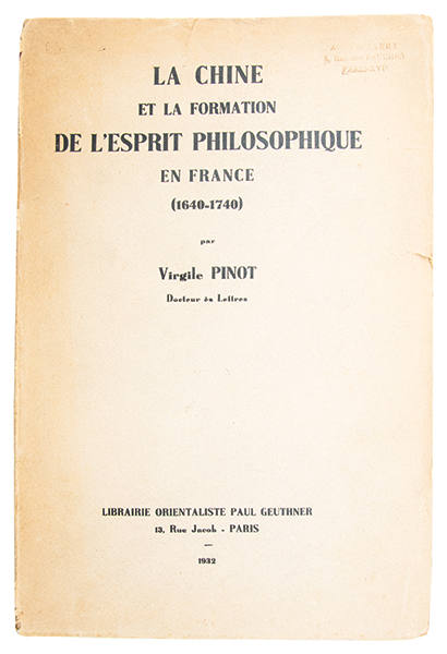 Étude importante pour lhistoire des échanges intellectuels, cet ouvrage analyse linfluence de la Chine sur la formation de lesprit philosophique en France entre 1640 et 1740. Lauteur met en lumière le rôle des missions jésuites et de la transmission des textes dans la diffusion des idées chinoises en Europe. Il montre comment ces sources ont nourri la réflexion de penseurs tels que Leibniz ou Voltaire. Létude éclaire ainsi la place de la Chine dans lélaboration de la pensée des Lumières. Elle constitue une contribution précieuse à lhistoire des influences intellectuelles et des circulations culturelles entre lEurope et lExtrême-Orient. Dos légèrement insolé, déchirures au plat supérieur, mors coiffes. Bon exemplaire, intérieur frais, témoins conservés.