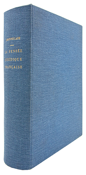 Rare édition originale de cet ouvrage publié dans un cadre universitaire et diffusé en nombre limité. Julien Bonnecase (1878-1950), professeur de droit civil et historien de la doctrine juridique, y propose une vaste synthèse de l’évolution de la pensée juridique française depuis la promulgation du Code civil jusqu’au début du XXe siècle. L’auteur examine les principales écoles doctrinales, leurs représentants et les transformations de la pensée civiliste. Ouvrage érudit, riche en références et en bibliographie, considéré comme le livre le plus célèbre de Bonnecase et une contribution majeure à l’histoire intellectuelle du droit privé. Bon exemplaire, bien relié.