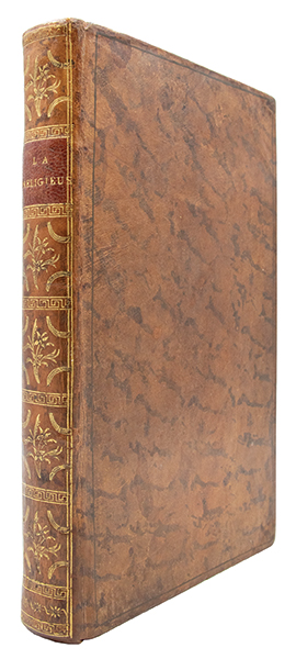 In-8 (196 x 137 mm), plein veau marbré de l'époque, dos lisse orné de compartiments garnis d'un motif fleuronné cloisonnés d'une grecque en place des nerfs, pièce de titre de beau havane, (2) f. de faux titre et titre, 411 pages.