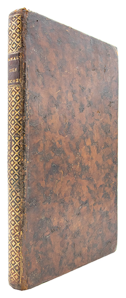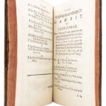In-8 (200 x 120 mm), veau moucheté de l'époque, dos lisse à motif quadrillé entièrement chargés d'un petit fer losangé, pièce de titre de maroquin brun, roulette sur les coupes, tranches rouges, xiv, 162 pages.