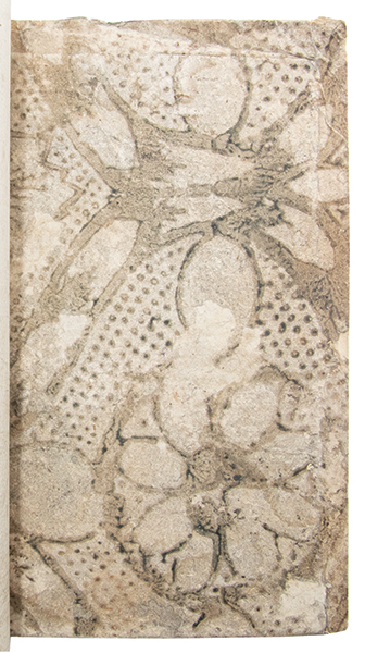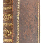 In-12 (162 x 102 mm), basane marbrée, dos lisse fleuronné, roulette en place des nerfs, palette en pied, titre doré, plats encadrés d'une roulette et d'un double filet, roulette sur les coupes, couverture de papier peint de l'époque conservé (reliure hollandaise postérieure), xlvi, 138 p., (34) p. de table, frontispice gravé, non rogné, témoins conservés.