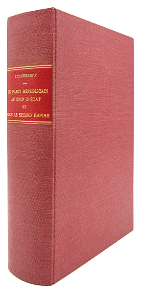 Edition originale. Étude historique consacrée au mouvement républicain français entre le coup d’État du 2 décembre 1851 et la fin du Second Empire. S’appuyant sur des archives et de nombreux témoignages inédits, Tchernoff reconstitue l’organisation, les réseaux et les stratégies de l’opposition républicaine après la répression de 1851. L’ouvrage montre la persistance de l’activité politique républicaine, entre exil, action clandestine et participation progressive à la vie publique. Par la richesse de sa documentation, il constitue une contribution importante à l’histoire politique du XIX siècle. Ex-libris d’Eugène Grelé, biographe de Jules Barbey d’Aurevilly. Bel exemplaire bien relié, très frais.
