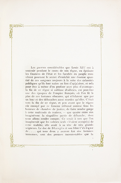 Grand in-8° (267 x 177 mm), demi-veau rouge de l'époque, dos à 5 nerfs plats, pièce de titre de veau, (8), 543, (1) p., texte encadré d'un filet vert bronze orné d'un motif rocaille en écoinçon, exemplaire non rogné.