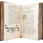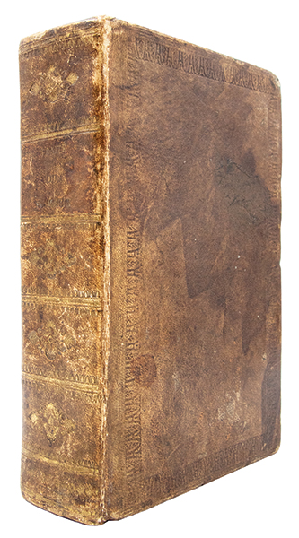 In-8 (170 x 117 mm), parchemin teinté havane, dos lisse orné de compartiments cloisonnés garnis d'un fer spécial répété, palette en pied, plat encadré d'une roulette de palmettes à froid, tranches marbrées (reliure du début du XIXe siècle). (52), 834, (10) pages, gravures sur bois dans le texte.