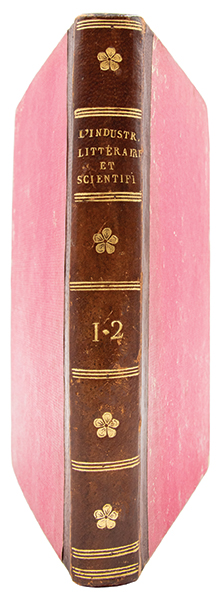 2 parties reliées en un volume in-8 (198 x 122 mm), demi-veau aubergine de l'époque, dos lisse orné de triples filets dorés en place de nerfs et d'un fleuron répété, titre et tomaison dorés, 224 pages et 136 pages, faux-titres et titres compris.