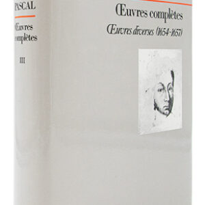 Dans la Collection « Bibliothèque européenne ». Tome II seul. Le tome II d’uvres diverses (1623-1654) réunit l’ensemble de la production pascalienne antérieure à la conversion définitive : uvres scientifiques, écrits sur la grâce, opuscules, lettres et actes, ainsi que les uvres complètes d’Étienne et de Jacqueline Pascal et la correspondance avec les Périer. Conçu comme une « somme pascalienne » soumise aux lois de l’édition critique et enrichie de toute la documentation originale relative à l’auteur et à son entourage, cette édition, restée inachevée (4 volumes parus sur 7 prévus), demeure la référence absolue des études pascaliennes. Très bon exemplaire, imprimé sur papier bible, préservé dans son étui éditeur d’origine.
