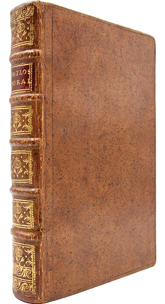 In-8 (164 x 105 mm), plein veau acajou moucheté de l'époque (164 x 105 mm), dos à 5 nerfs richement orné de compartiments fleuronnés et cloisonnés, pièce de titre de maroquin bordeaux, filet à froid en encadrement des plats, filet doré sur les coupes, tranches rouges, xxx, 297 p., (1) bl., (9) p. de table et errata, (1) p. bl., (1) f. bl., 2 planches gravées hors texte, bandeaux gravés.