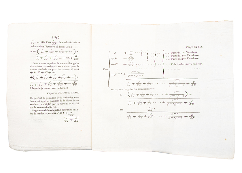 Edition originale de cet ouvrage fondateur de la pensée économique moderne, couronné par lInstitut national en 1801. Nicolas-François Canard (17541833), mathématicien et économiste, y propose pour la première fois en France une formalisation rationnelle et quantitative des phénomènes économiques, appliquant lalgèbre à la production, à léchange, à la monnaie et à limpôt. Cette démarche novatrice fait de lui lun des premiers à tenter une modélisation de léquilibre économique, bien avant Cournot ou Walras. Il développe en particulier une théorie originale de la fiscalité selon laquelle tout impôt retombe sur la rente, en contradiction avec les postulats physiocratiques. Nourrie dune admiration critique envers Quesnay et Smith, sa pensée se situe à la croisée dune rationalité scientifique naissante et dun humanisme éclairé. Mal accueilli en France à sa parution, son usage des mathématiques fut critiqué par Say, Blanqui ou même Cournot qui pourtant sen inspira. Louvrage demeure aujourdhui reconnu comme un jalon essentiel dans la formalisation abstraite et systémique des lois économiques. (Einaudi 830 Goldsmiths 18122 Kress B.4350) Provenance : André Jacques Porchon de Bonval (1742-1836), notaire royal et député de la paroisse à lassemblée du bailliage en 1789, avec petite signature au titre et étiquette supra-libris sur la couverture. Exceptionnel exemplaire, très frais, dans son état de parution, sous couverture bleue dorigine, entièrement non rogné.
